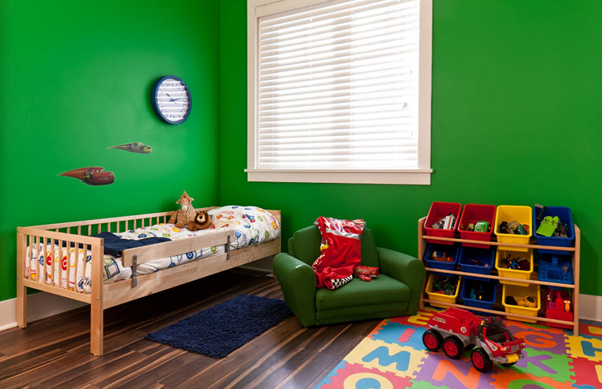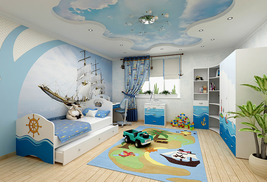 El color infantil más popular. papel pintado para niño - azul, que se utiliza principalmente para crear interiores de temática náutica. Los tonos verdes y beige serán una excelente base para una habitación estilo jungla.