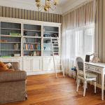 La abundancia de muebles puede hacer que la habitación parezca congestionada. Para evitar este efecto, se recomienda crear un fondo claro y neutro con papel tapiz, de lo contrario el interior resultará demasiado colorido.