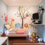 Debe negarse a comprar papel tapiz con un patrón pequeño. En una habitación así, el bebé se aburrirá. La mejor opción de acabado serán los murales para niños con diferentes patrones de trama o con uno, pero con una imagen grande que sea de interés para el niño.