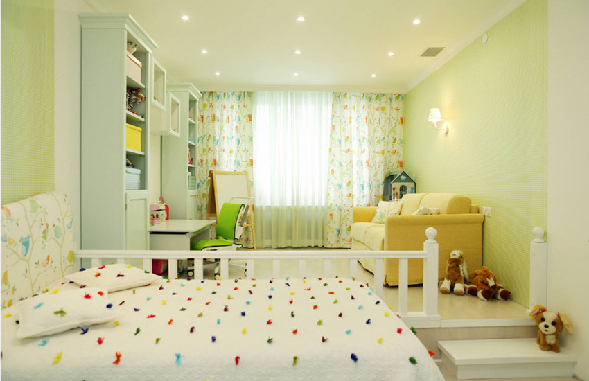 ¡Nota! La presencia de tonos fríos en la habitación del niño tiene un efecto negativo en el niño. El número de tales colores debería ser limitado. Alternativamente, se permite el uso de inserciones oscuras sobre un fondo claro.