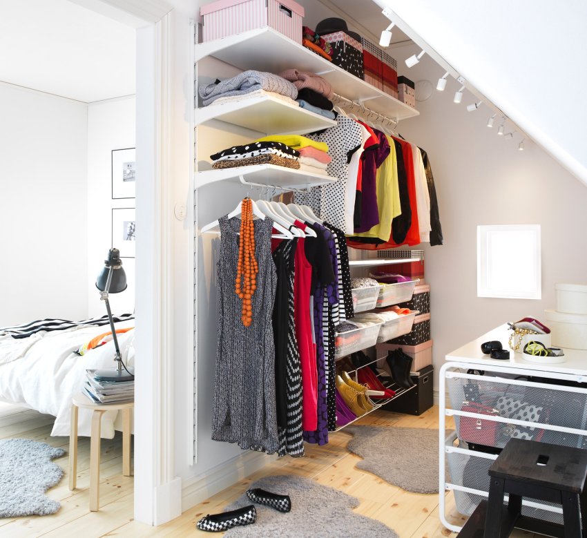 La serie Stolmen de complejos de almacenaje con estanterías regulables en altura permite el uso de estructuras, teniendo en cuenta cualquier altura del vestidor. Ikea produce este tipo de sistemas de almacenamiento con racks de 2,1 a 3,3 m de largo Otra ventaja de estos complejos es su increíble movilidad: las estructuras son fáciles de montar y, si es necesario, se desmontan rápidamente para transferirlas a otro lugar.