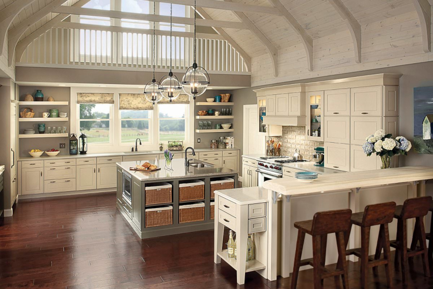 Cocina estilo campestre, excluye encimeras de vidrio y plástico en el techo