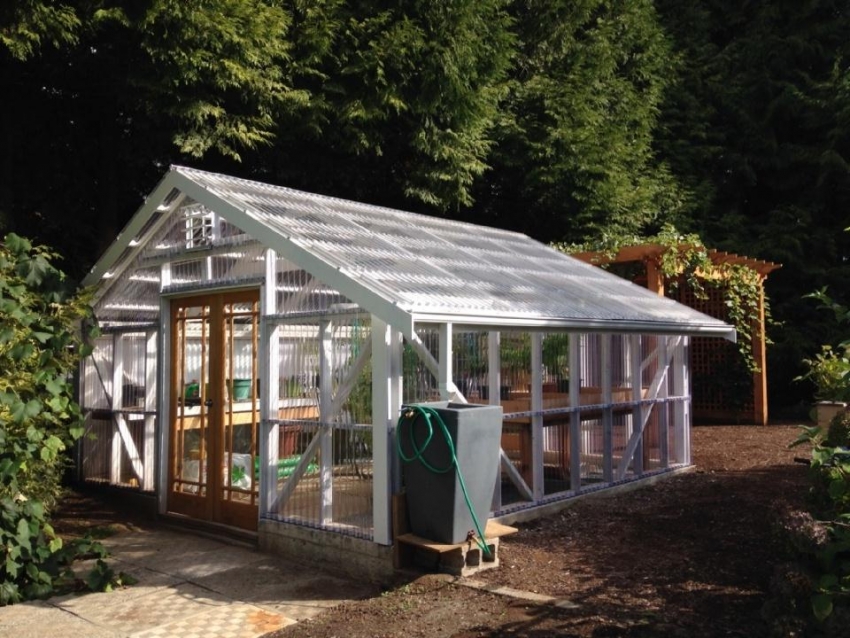 Como para material de cobertura, y aquí la popularidad fue ganada por la novedad recientemente aparecida: el policarbonato.De hecho, por sus características y transmitancia de luz, no es en absoluto inferior al vidrio y, al mismo tiempo, tiene menos peso y es mucho más fácil de instalar.