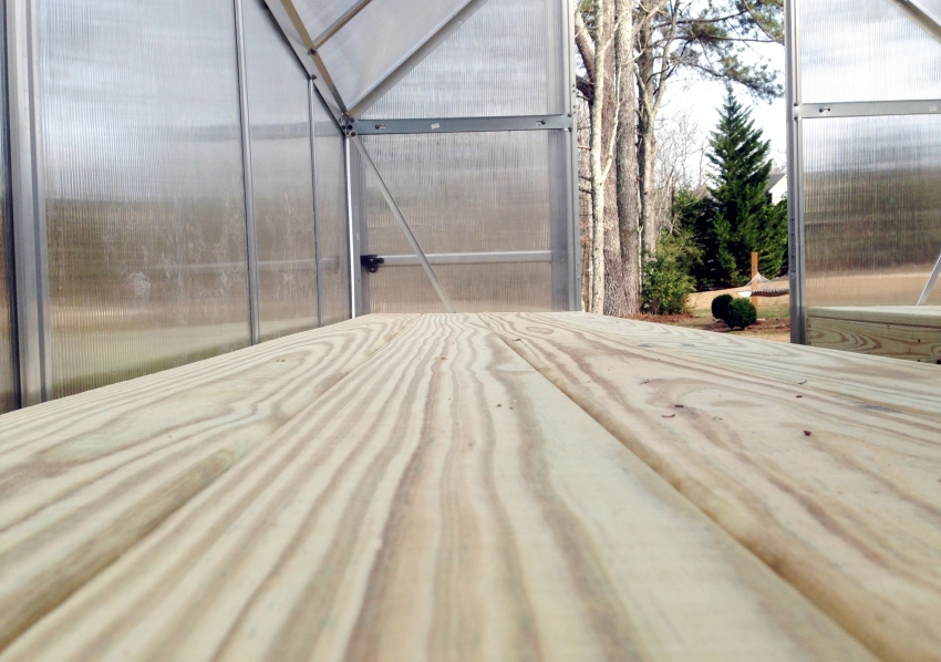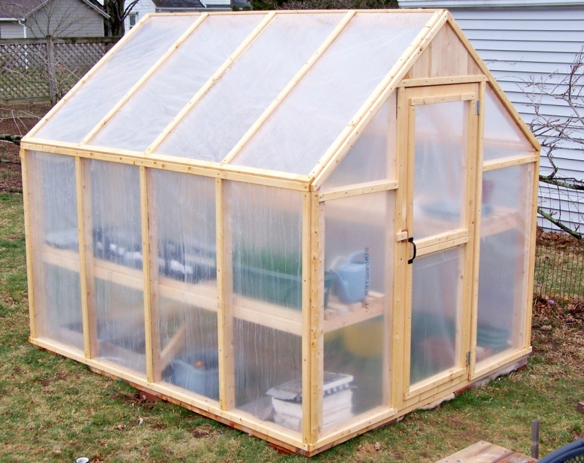 Para mayor comodidad, en el invernadero, puede construir estantes anchos de madera, que serán convenientes para cultivar plántulas.