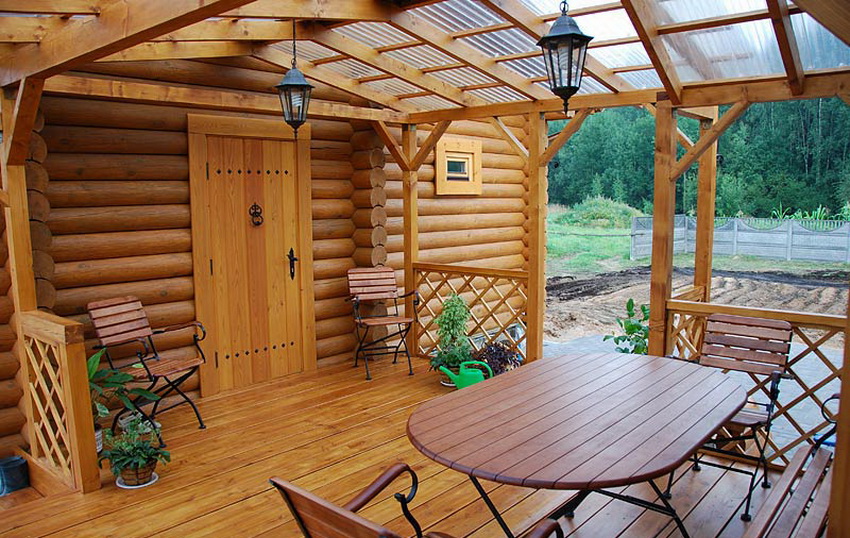 - el mirador brinda la oportunidad de salir del baño para respirar aire fresco. En este caso, no es necesario que se quede parado en el patio, sino que puede sentarse cómodamente a la mesa;