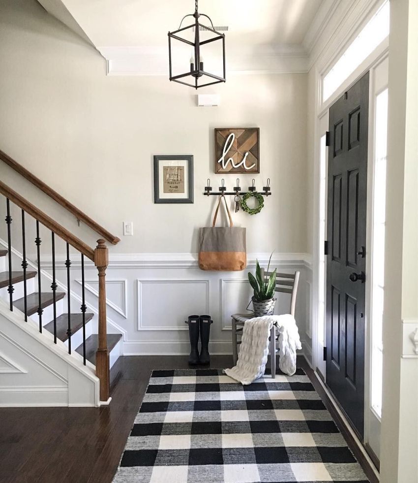 La combinación de colores en blanco y negro se usa a menudo al decorar un pasillo de estilo escandinavo