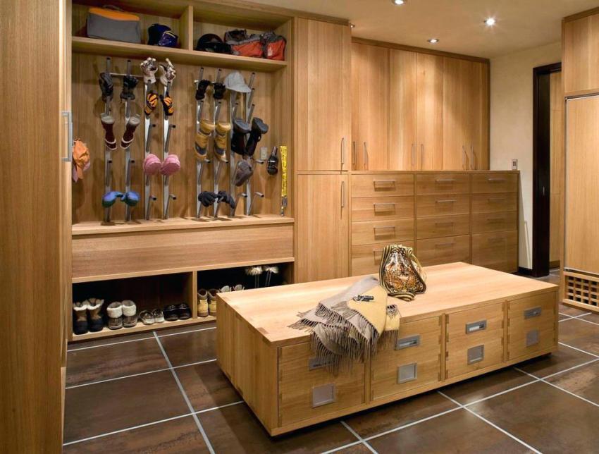 Las paredes largas de dicho corredor deben usarse de la manera más racional posible para organizar muebles funcionales, lo que ayudará a liberar otras habitaciones. Al elegir muebles, debe asegurarse de que haya suficiente espacio para un movimiento cómodo. Las opciones adecuadas para la decoración de interiores de un pasillo estrecho incluyen:
