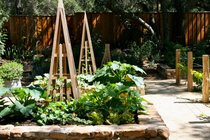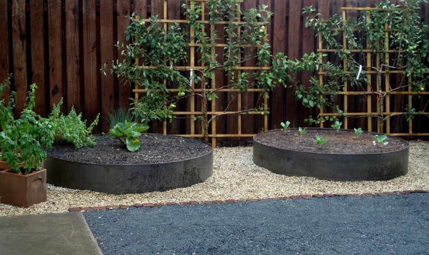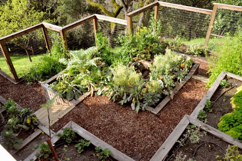 Las cercas vivas se pueden organizar plantando clavijas de árboles de crecimiento rápido, cerezos o sauces en los bordes de las camas.