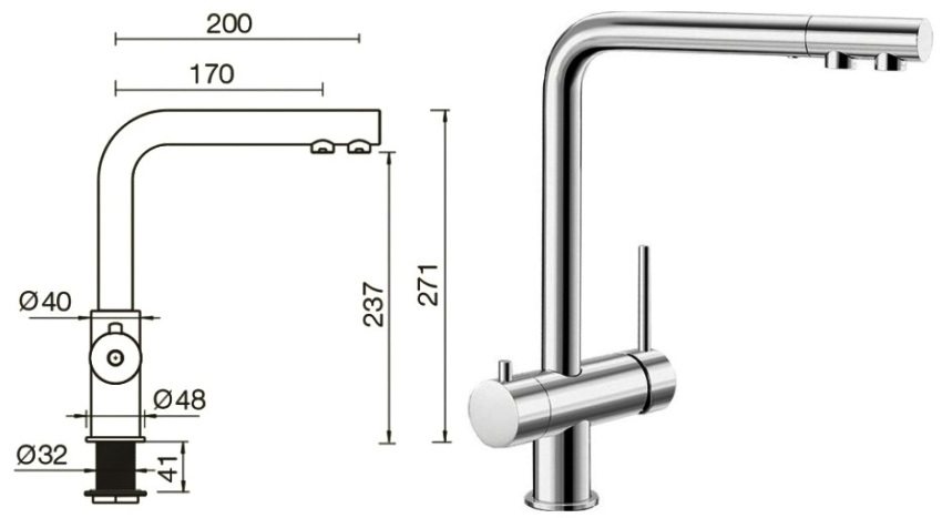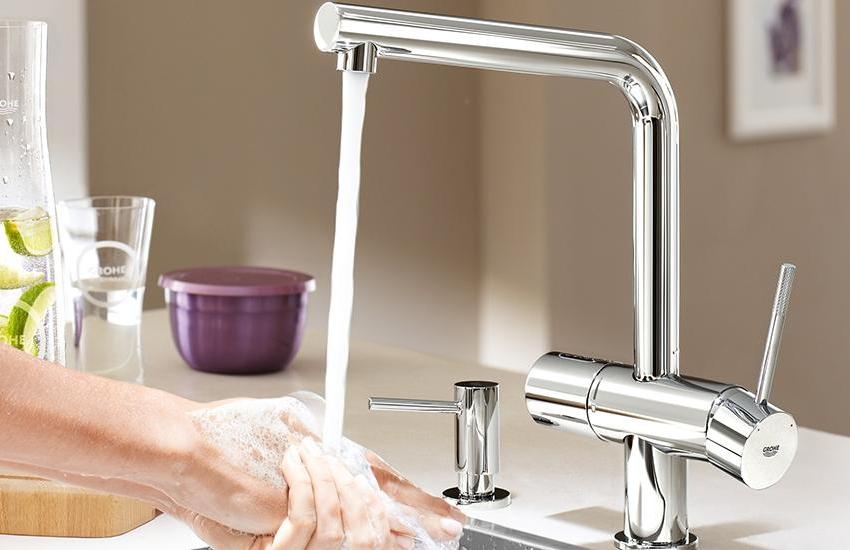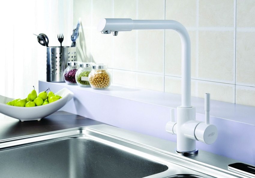 Dado que el uso de agua filtrada se ha generalizado, ha existido la necesidad de instalar un grifo individual separado para el suministro de agua tratada. Pero la instalación de dicha grúa proporciona un orificio de montaje adicional en el fregadero. Además, la presencia de un mezclador y un grifo para el agua potable satura un poco la capacidad del fregadero. Los grifos de cocina con grifo para agua potable son una solución única, en la que es posible conectar una entrada adicional al mezclador para suministrar agua purificada.