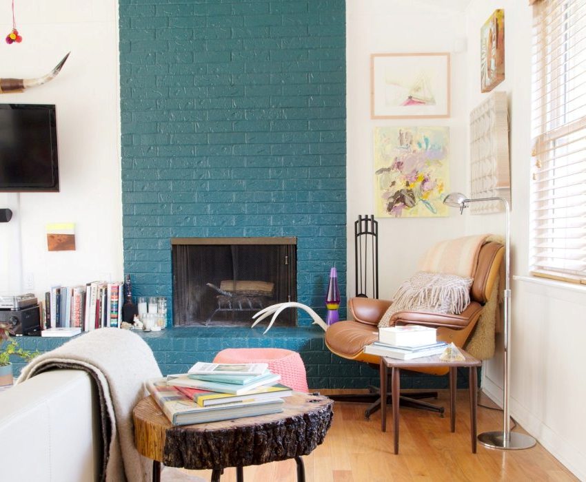 ¡Consejo útil! Combinado con una chimenea biológica o eléctrica, el papel tapiz de ladrillo creará una atmósfera cálida en una institución pública. Dichos dispositivos son absolutamente seguros y no tienen un efecto negativo en el material de acabado.