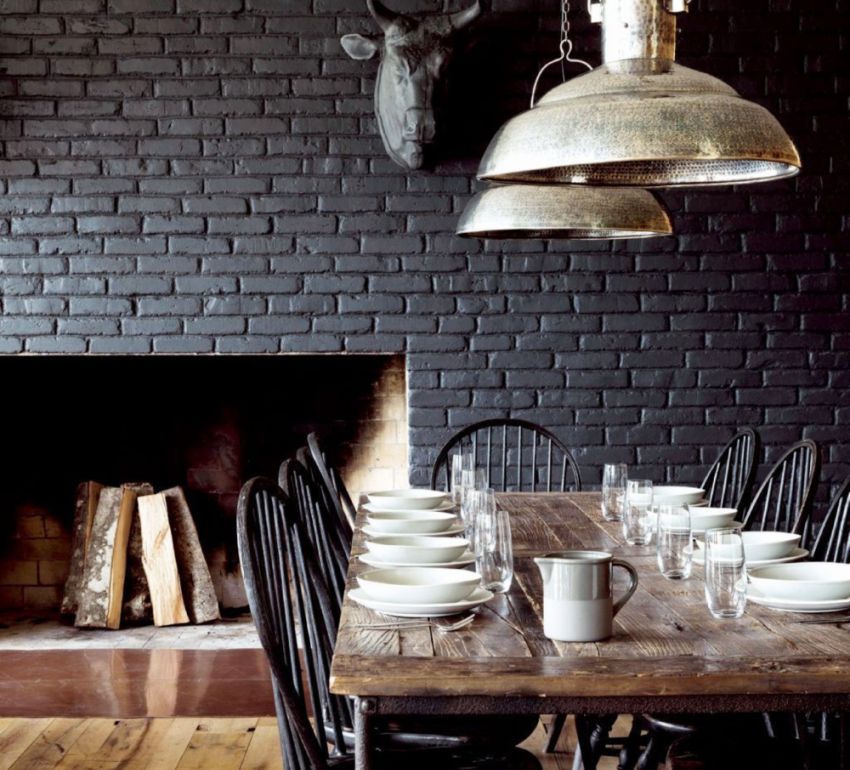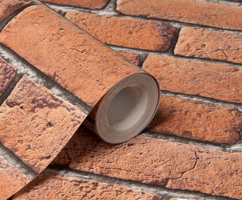 - La impresión de ladrillo oscuro debe complementarse con el papel tapiz claro más común.