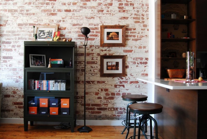El papel tapiz es el material más económico y fácil de instalar. Para crear con su ayuda el efecto de paredes de ladrillos desnudos, tomará una cantidad mínima de tiempo. Estos papeles pintados son perfectos para cualquier solución de estilo de la habitación.
