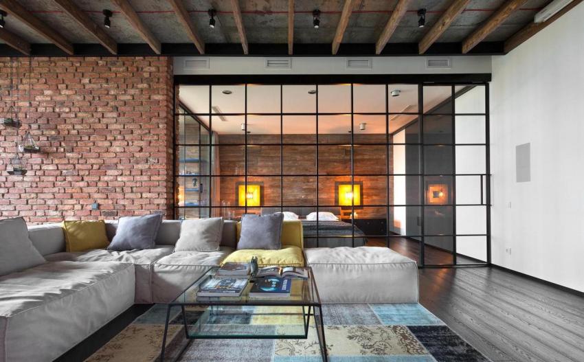 Las paredes de ladrillo desnudo dan a la habitación un aspecto lúgubre y deshabitado. Sin embargo, hoy en día muchas personas eligen este diseño porque es lacónico, no estándar y facilita la selección de accesorios.