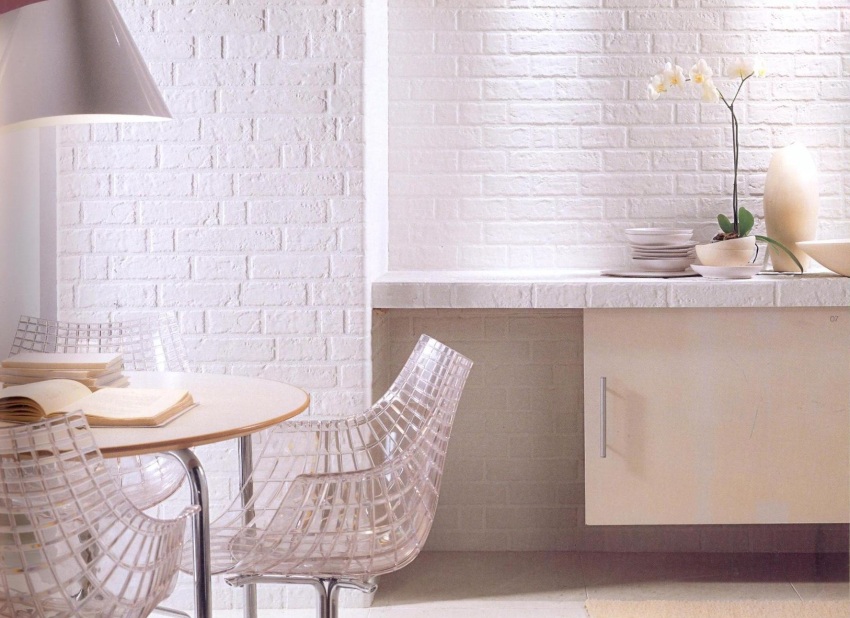 - La decoración de paredes de ladrillo no requiere una preparación preliminar de la superficie. La excepción son las paredes de yeso, que requieren un refuerzo de malla adicional;