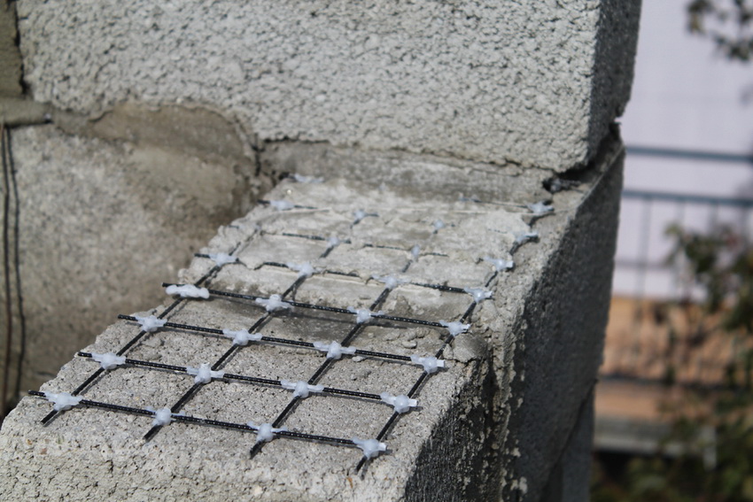 Refuerzo de hormigón celular mediante malla de mampostería de basalto
