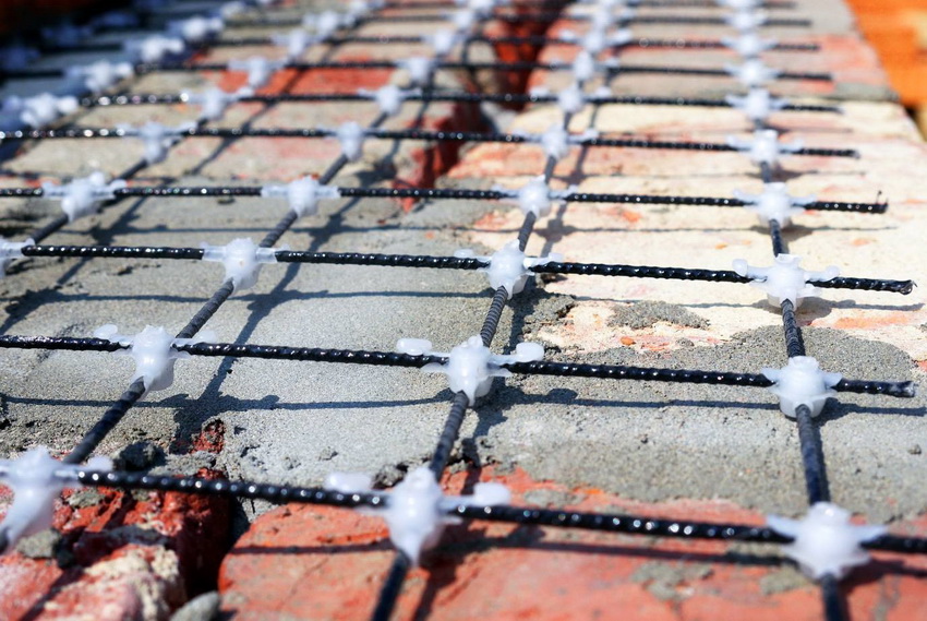- Las varillas de fibra de basalto se distinguen por un mejor alargamiento y la capacidad de soportar una alta carga de rotura (50 kN / m) que una rejilla de elementos de acero del mismo diámetro. La malla de mampostería 100x100 tiene la mayor tensión en las direcciones longitudinal y transversal;