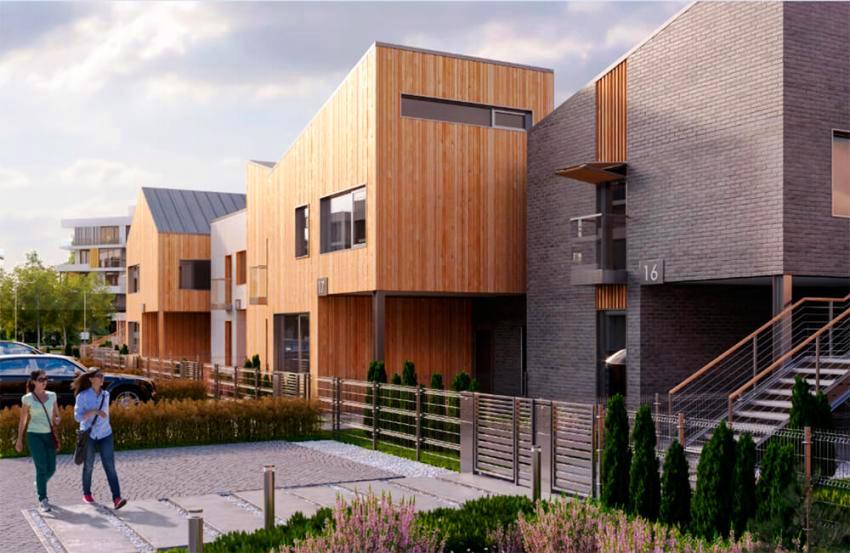 A pesar de que la casa adosada y el ático están destinados a propietarios exigentes, los edificios difieren significativamente entre sí. La primera opción es un edificio suburbano con entradas independientes para cada apartamento. La casa tiene un jardín y un garaje.