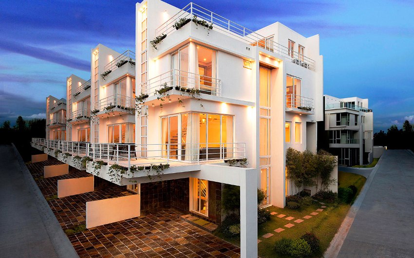 The Quad House es un complejo de varios pisos para cuatro familias. Villetta es una especie de casa adosada. Sin embargo, el edificio se caracteriza por un diseño arquitectónico más original, que involucra el uso de arcos, áticos, terrazas y terrenos. Las casas británicas se crean estrictamente al estilo inglés. La fachada de tales edificios está terminada con ladrillos de terracota, lo que le da a la estructura una sofisticación. Este complejo pertenece al segmento de clase élite.