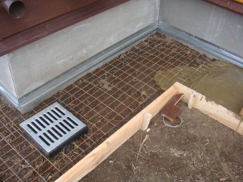 Al verter, la mezcla se compacta con un vibrador o con una varilla de hierro (mediante el método de bayoneta). Una pieza de refuerzo se sumerge en hormigón y se balancea con movimientos de rotación. De forma similar, pasan toda la zona ciega. Como resultado de pinchazos frecuentes, las burbujas de aire y el exceso de agua se elevarán y el hormigón se volverá más denso.
