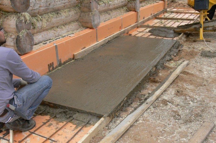 El hormigón se mezcla en un estándar dimensiones 1: 3: 1 (1 parte de cemento, 3 partes de piedra triturada y 1 parte de arena). La mezcla se vierte sección a sección, instalando listones transversales en el borde. Los extremos superiores de los puentes deben estar alineados con la superficie de la tira. Los tablones sirven simultáneamente como balizas para nivelar el hormigón. Por lo tanto, deben colocarse inmediatamente en el grado deseado. El hormigón se nivela con llana ancha o llana de enyesado.