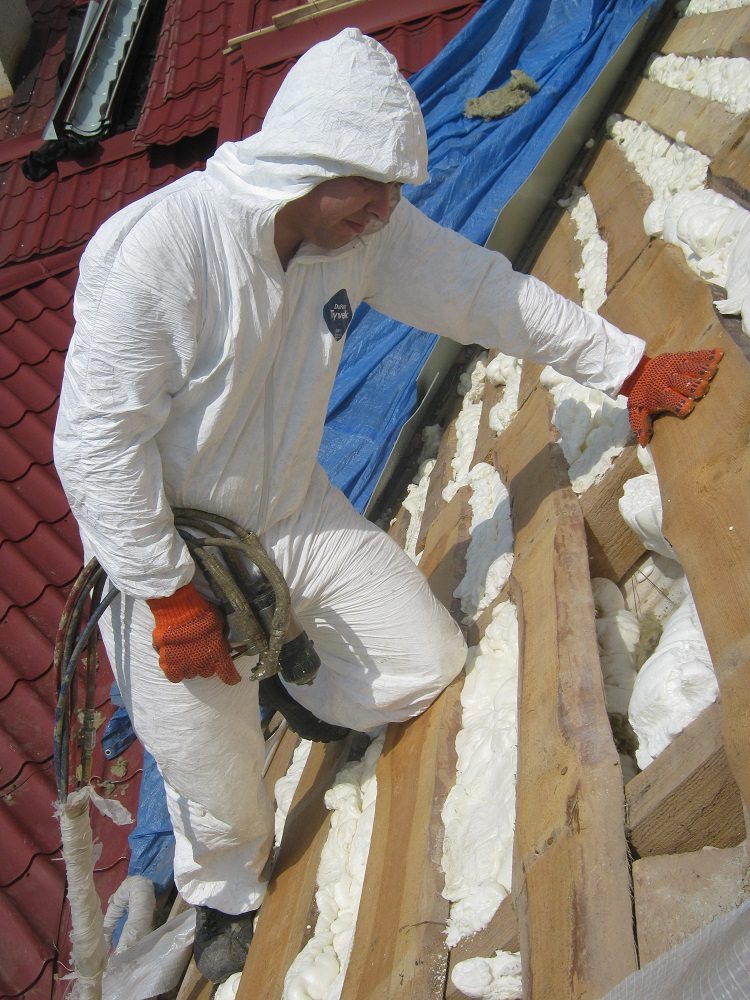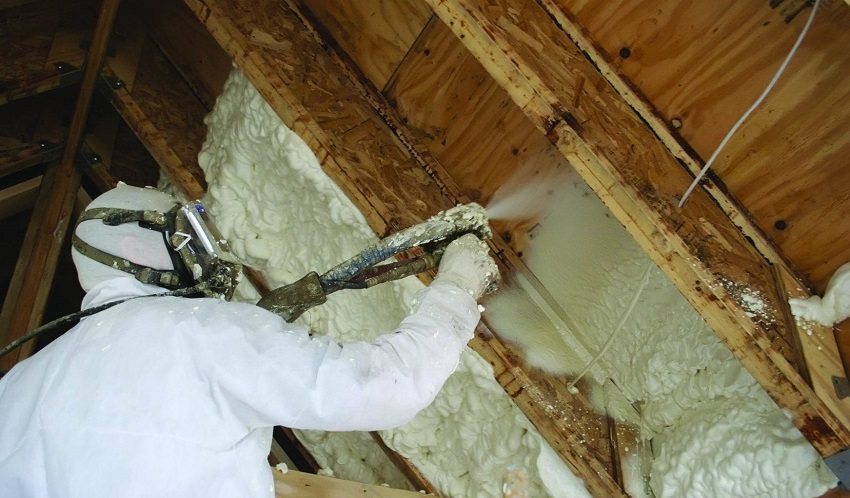Por separado, debe tenerse en cuenta material como espuma de poliestireno rociado. Su tecnología de peinado es completamente diferente. Usando un dispositivo especial, la masa de poliestireno se rocía sobre la superficie. Poseedor de fluidez, penetra en todas las grietas e irregularidades, llenándolas. Bajo la influencia del aire, la masa forma espuma y se endurece. Este tipo de aislamiento es el más conveniente de instalar y tiene todas las ventajas de la espuma. De las desventajas, se destacan el alto precio y la necesidad de una instalación especial.