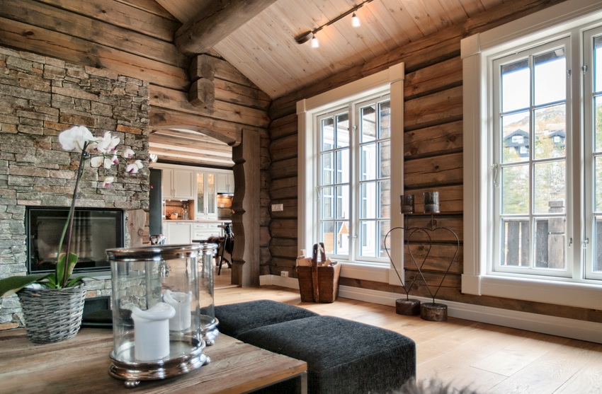 En casas de madera o troncos, una opción popular para el diseño de interiores con decoración mínima.
