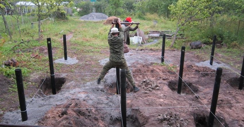 Se trata de varillas de hormigón armado que se clavan profundamente en el suelo. La tecnología de esta construcción se basa en cálculos precisos de la distribución de toda la carga del futuro edificio a estos cimientos. Las pilas se hunden en las profundidades hasta que caen en la zona más estable del suelo. Este tipo de cimentación se utiliza en la construcción industrial, ya que el trabajo de hincado de pilotes en el suelo se realiza con equipo especial pesado. Para una casa de campo o cabaña de verano, este tipo de pila no es adecuado, ya que es imposible instalarlos con sus propias manos.