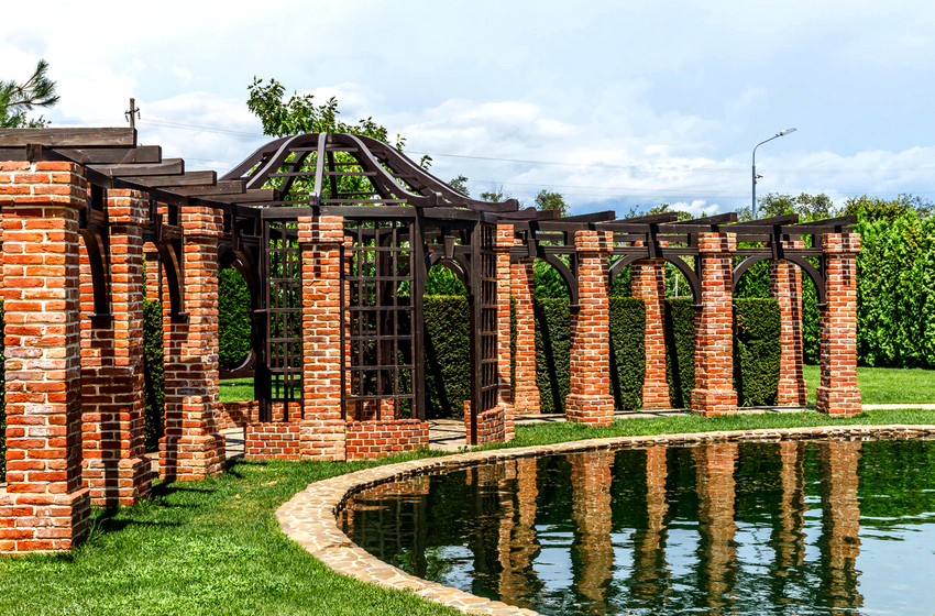 - Respetabilidad, fuerza y apariencia estética. Las estructuras de ladrillo, especialmente aquellas que se complementan con madera, lucen muy bien en cualquier diseño de paisaje y están en armonía con el medio ambiente.