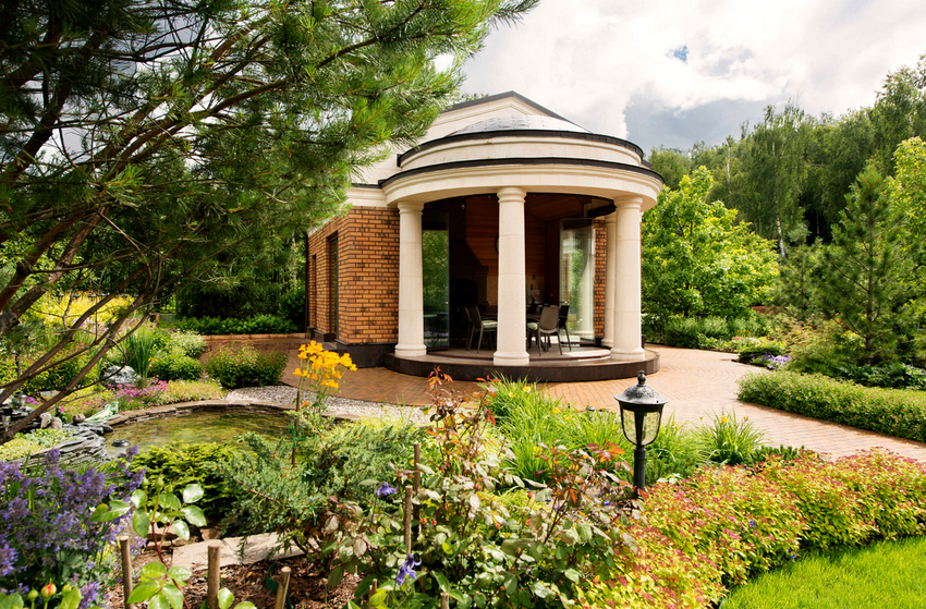Elija un lugar acogedor. Se considera que uno de los factores importantes para instalar una glorieta de ladrillos con sus propias manos es la ubicación correcta. Si hay espacios verdes alrededor del edificio, que crean protección adicional contra el sol y el viento, será mucho más agradable estar en una glorieta de este tipo.