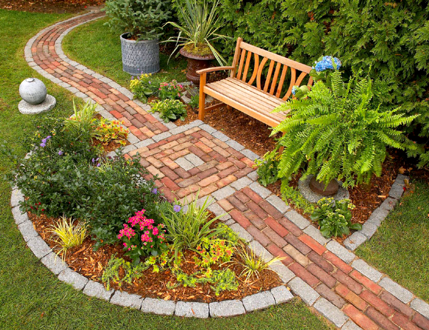 Desde el ladrillo restante después de la construcción de la glorieta, puede diseñar hermosos senderos de jardín.