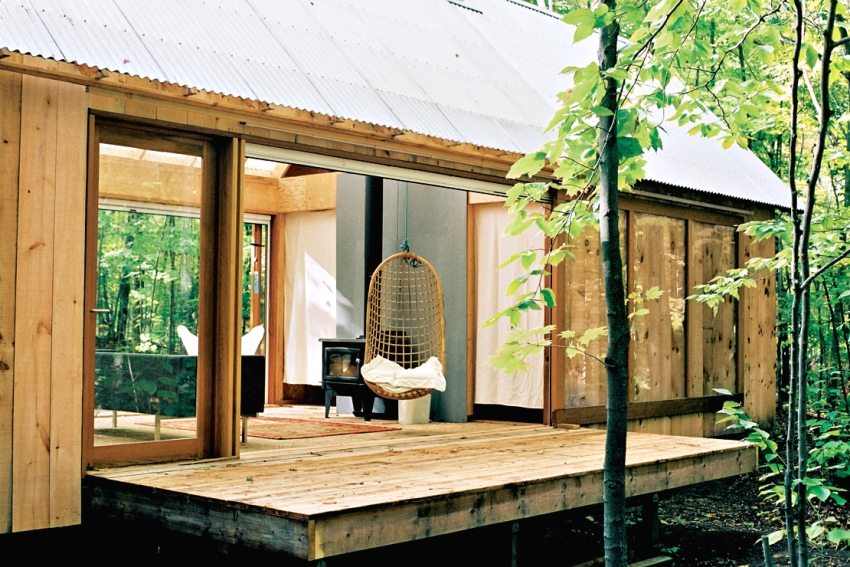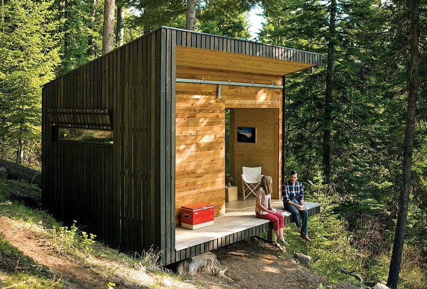 En el surtido de empresas proveedoras, se pueden distinguir dos tipos de cabañas de campo: las llamadas "cabañas temporales" y los bloques de operación a largo plazo. Los primeros son relativamente económicos, están hechos de vigas de madera y están revestidos con aglomerado en el interior. Estas cabañas están equipadas solo con el mínimo más necesario.