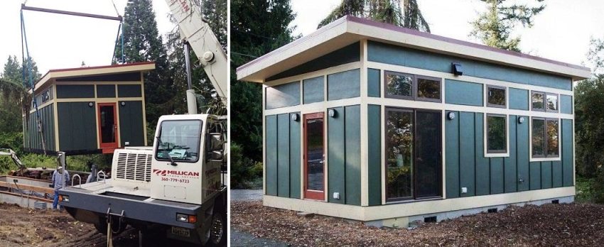 Si las dimensiones del complejo difieren de las estándar, y esto sucede a menudo con cabañas grandes de dos habitaciones, entonces la entrega del bloque al sitio solo es posible en forma desmontada. Es muy posible ensamblar una casa de verano de este tipo con sus propias manos, y los proveedores estarán felices de dejar este trabajo al cliente. Además, montar una casa de cambio con sus propias manos es inevitable si no hay acceso al sitio para el transporte de mercancías, o este camino es muy difícil (carreteras estrechas, inconvenientes cerca, la incapacidad del automóvil para dar la vuelta para descargar).
