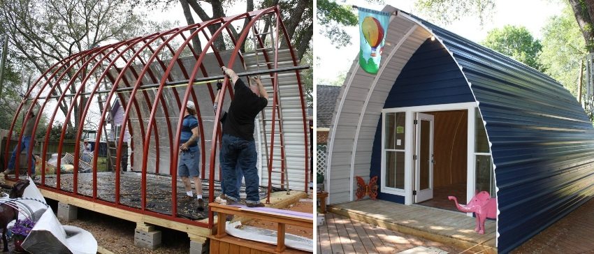 También hay edificios muy pequeños en el mercado, que constan de una habitación de menos de tres metros de largo. Sin embargo, el alcance de su aplicación está limitado por un pequeño volumen interno, en el que es posible organizar un bloque de servicios públicos o un almacén para herramientas de jardín.