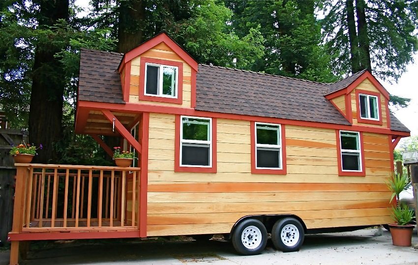 Habiendo elegido una casa de cambio de dos habitaciones para uso permanente en el país, debe tener cuidado de que no parezca un elemento extraño en el sitio. Se puede usar una sábana profesional como la protección externa más simple de un bloque residencial, pero esta no es la mejor opción, ya que el exterior de la casa se verá poco estético.