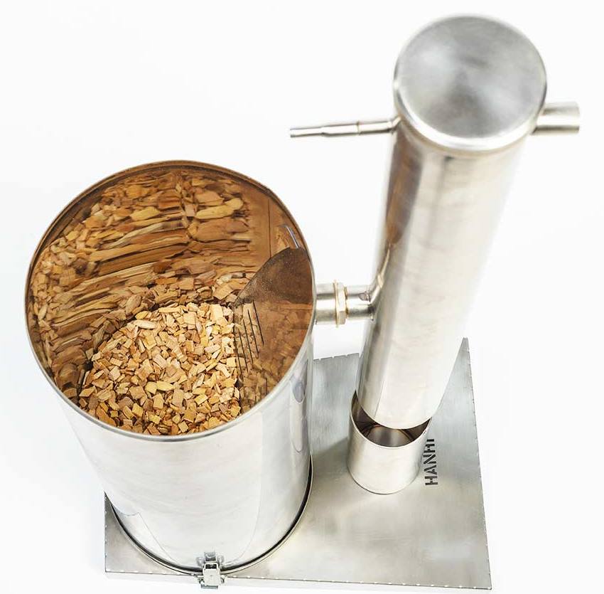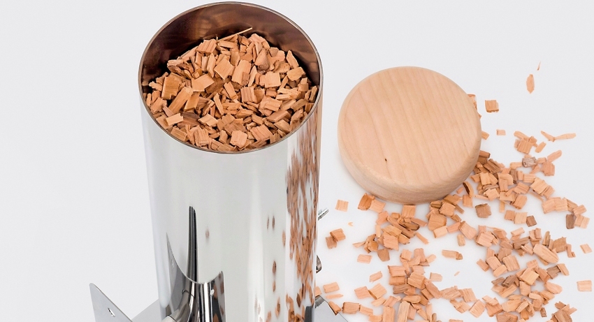Primero, necesita cargar chips en la estructura. La cantidad de combustible puede ser diferente. Como regla general, su peso total es de aproximadamente 0,7-0,8 kg. Un punto importante es la elección del tipo de madera que se utiliza para obtener el humo necesario para ahumar. Es categóricamente imposible utilizar árboles de coníferas, ya que emiten resinas cuando se calientan, que estropearán la comida cargada en la máquina de humo. Para ahumar, se recomienda seleccionar leña y aserrín de árboles de hoja caduca y frutales (por ejemplo, roble, arce o manzano).