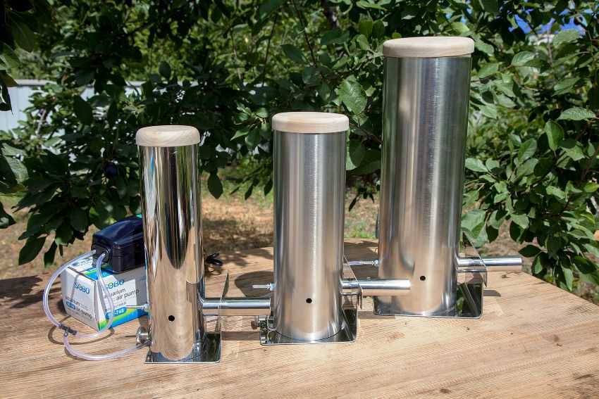 Un ahumadero ahumado en frío con un generador de humo es muy funcional si su diseño se ha elaborado correctamente. Las opciones más simples para generadores de humo están hechas de un tubo al que la parte inferior está bien soldada. Dichos dispositivos no prevén la presencia de un cenicero, y su limpieza es muy simple: la ceniza acumulada simplemente se sacude del dispositivo.