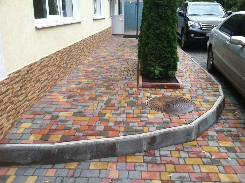 ¡Aviso util! Los bordillos de las aceras se suelen combinar con baldosas o adoquines. En este sentido, muchos fabricantes comenzaron a agregar pigmentos colorantes a sus materias primas. Puede batir con éxito el suelo utilizando colores contrastantes.