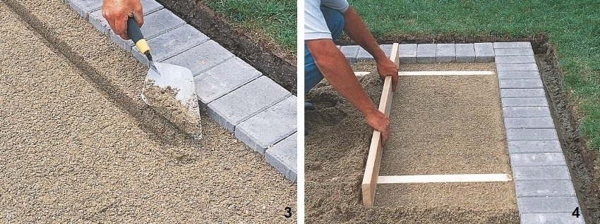 Una vez que los bordillos están instalados y fijados de forma segura, colocamos las losas de pavimento con nuestras propias manos, el material de video con la tecnología lo ayudará a resolverlo.