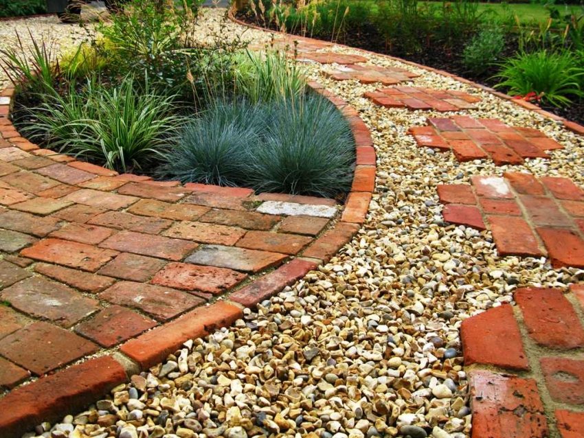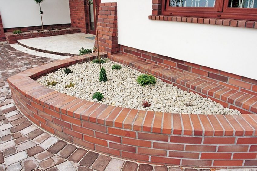 Este tipo de material va bien con el revestimiento de adoquines, especialmente si el diseño de su área local está hecho al estilo inglés. Cabe señalar que no se recomienda instalar ladrillos como bordillo en áreas donde hay lluvias frecuentes y fuertes, y cae un alto nivel de precipitación. Bajo la influencia de una gran cantidad de humedad, este material se colapsa muy rápidamente.