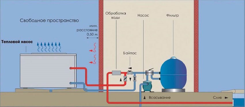 El principio de funcionamiento de una bomba de calor es bastante complicado y se basa en la transferencia de calor de varias etapas de diferentes fuentes. La fuente inicial de calor para la bomba puede ser agua subterránea o manantiales termales, gases de combustión y en general cualquier cosa que esté un poco más caliente que el agua de la piscina.