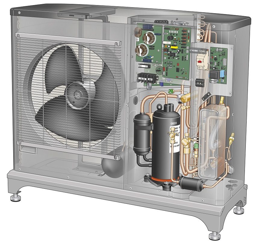 El compresor comprime el vapor a 20-25 atmósferas, lo que produce la liberación de una gran cantidad de energía térmica. Es esta energía la que se utiliza para calentar el agua de la piscina.