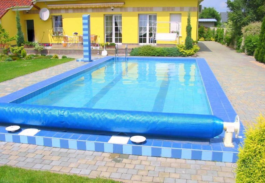 También cabe mencionar un tipo tan interesante como es una manta calefactora para la piscina. De hecho, esta es una cubierta especial que puede estar hecha de polietileno o lona, y también en forma de persianas. Las mantas calefactoras especiales para la piscina Intex no solo evitan que las hojas y otros desechos entren en el agua, sino que también acumulan energía solar para calentar el agua. Por supuesto, es imposible calentar el agua con la ayuda de una manta de manera tan eficiente como con la ayuda de calentadores instantáneos o de almacenamiento, pero da un aumento de temperatura en varios grados.