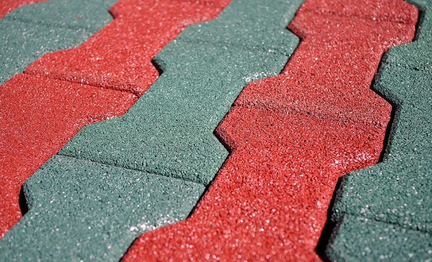 Algunos tipos de baldosas de caucho tienen varillas especiales que proporcionan una fuerte adhesión de los productos entre sí.