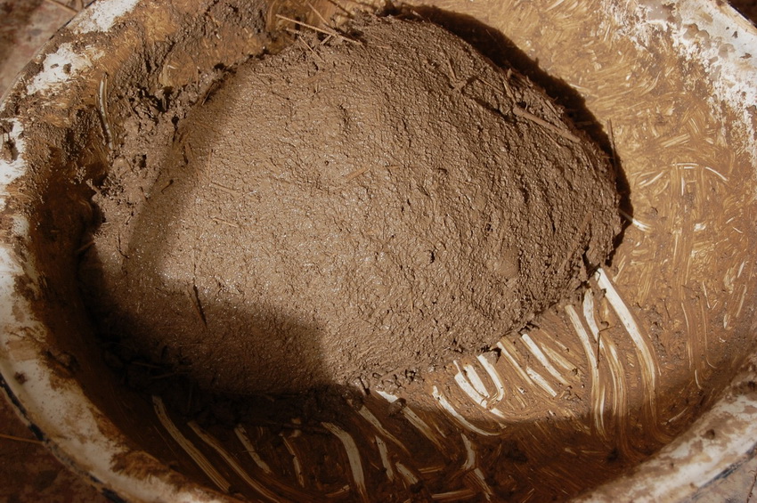 La arcilla se limpia preliminarmente de impurezas, se limpia a través de un tamiz, se mezcla y se remoja durante 48 horas. Los elementos restantes se agregan a la sustancia preparada. La mezcla se mezcla bien hasta que se forma un estado viscoso, que recuerda la consistencia de la crema agria. A continuación, la composición preparada debe dejarse durante 7 días para que se seque y adquiera las condiciones necesarias. Durante este período, la mezcla debe agitarse periódicamente para asegurar su secado uniforme. El agua que se acumula en la parte superior debe drenarse.