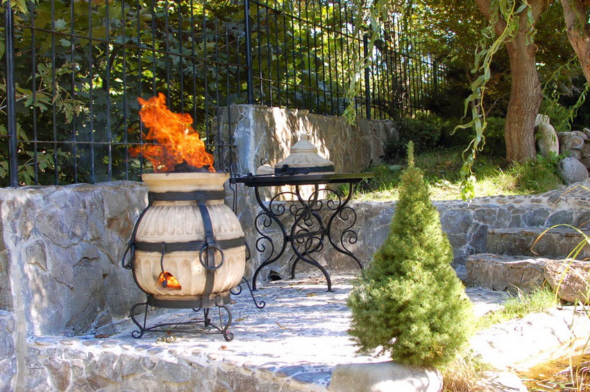 Además, el cuerpo de la estufa se puede revestir con piedra natural, esto le dará a la estructura un aspecto atractivo y estético, que se muestra claramente en la foto del tandoor. El precio de la estructura terminada será en promedio 4500-5000 rublos.
