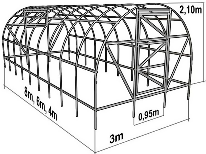 Habiendo elegido la forma de la estructura, comienzan a desarrollar dibujos de un invernadero de policarbonato con sus propias manos desde un perfil. Muestran todas las dimensiones: alto, largo, ancho de la estructura, la distancia entre los postes del marco. El esquema prevé la presencia de aberturas de ventanas y puertas, parámetros del techo y otros datos necesarios.