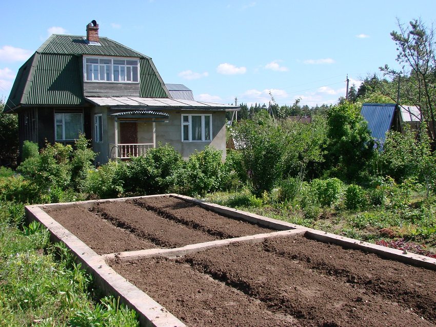 ¡Aviso util! En la etapa de organización de la base de la tira, puede proporcionar inmediatamente el llenado de cercas para las camas dentro del futuro invernadero.