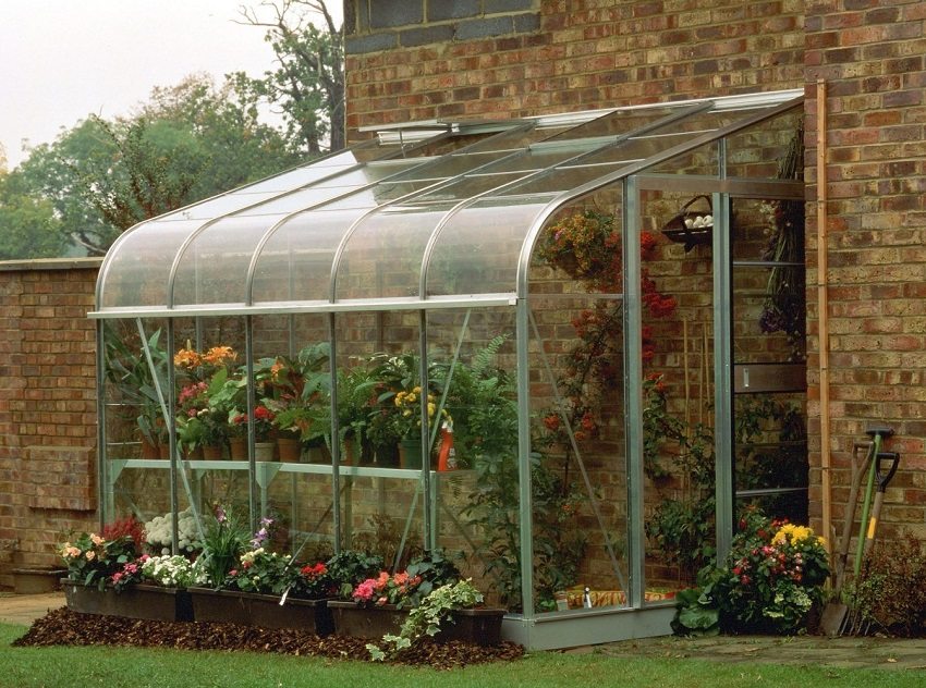 - una estructura, uno de cuyos lados es una pared de una estructura existente; esta opción se usa cuando los fondos para construir un invernadero son limitados;