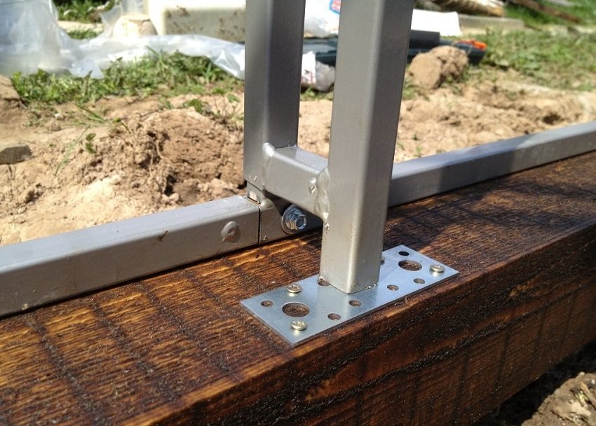 Cuando la base del invernadero está lista, comienzan a amarrarla. Para esto, como regla general, se utiliza una tubería de perfil o una esquina de metal. El arnés se fija a la cimentación mediante pernos de anclaje. El requisito principal es un recubrimiento de alta calidad de la superficie metálica de las tuberías con pintura para proteger contra la corrosión.