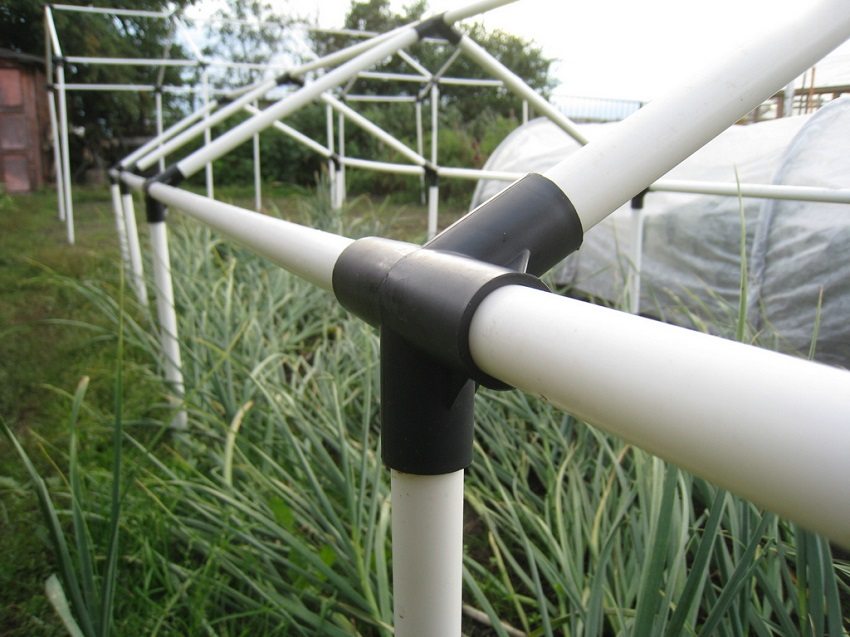 Tuberías de polipropileno. Este marco es fácil de montar debido a la flexibilidad del material. Es esta propiedad de las tuberías la que le permite darle al marco la forma deseada. El diseño es robusto y puede soportar varias cargas. Para un invernadero de este tipo, no necesita colocar una base, sino simplemente instalarla en un sitio preparado.